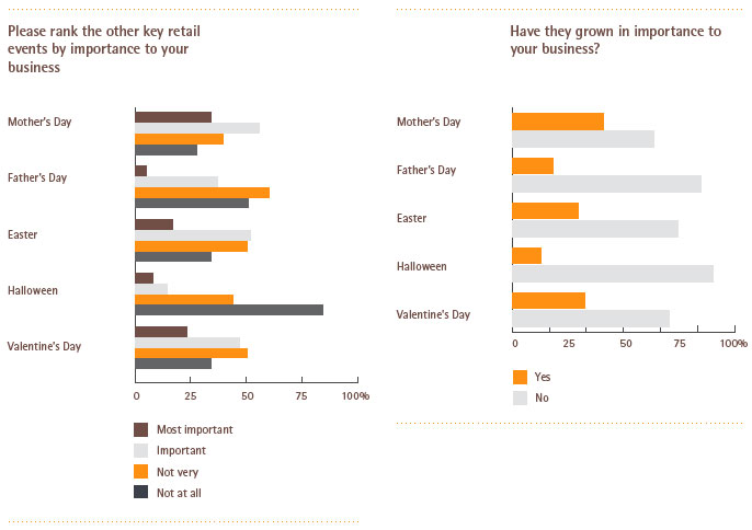 The Importance of Retail Events For most independent retailers, Mother's Day is the most important event after Christmas. Halloween continues to grow in the UK, with Tesco rating it more important than Valentines and Mother's Day. These key events offer growth opportunities for retailers.