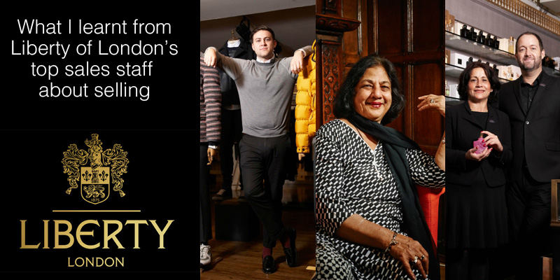 None of the top sellers at Liberty of London felt like they were forcing the sale or being pushy. It all felt very natural and easy and customer focussed. All of them had a natural approach to selling.